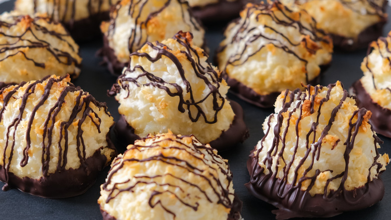 Macaroons are often confused with macarons, but these two sweets couldn't be less like each other if they tried. Macarons are finicky, almond-flour-based cookies filled with delicate ganache. They take hours to make and can be waylaid by the slightest changes in humidity or temperature. On the other hand, macaroons are easier to put together and are less susceptible to weather-dependent disasters. And while they both use beaten egg whites and are gluten-free, only macaroons use sweetened condensed milk as a lusciously flavorful binder.