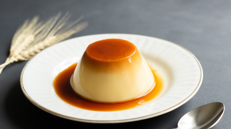 Flan is a creamy caramel custard with a silken, wobbly texture and a sweet, smoky sauce that is created during baking. It's a Spanish dessert developed to use excess eggs. It eventually migrated to Mexico, where it became traditional to use the whole egg (as opposed to just the yolks in Spanish flan). When milk was scarce, sweetened condensed milk stepped into the breech and rescued this dessert, especially in areas where Americans were stationed during wartime.