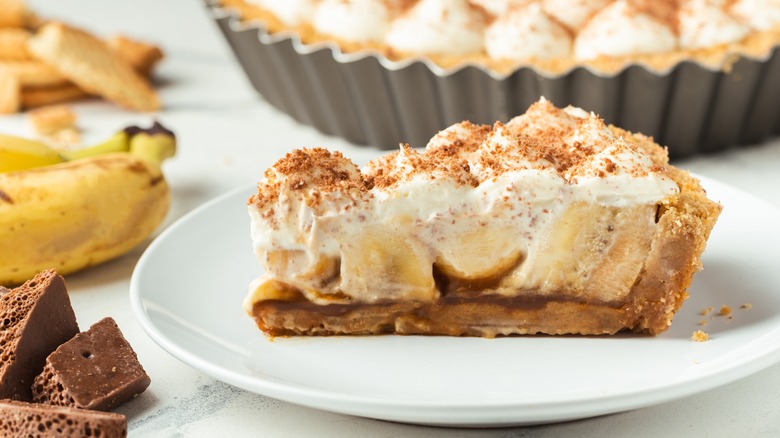 With a little planning, the whole pie comes together in minutes. Make a simple graham cracker crust and spread a layer of dulce de leche made with sweetened condensed milk. Beat heavy whipping cream until it forms stiff peaks, then fold sliced bananas into the cream. You can also slice the bananas and layer them on the dulce de leche, then add the whipping cream. Add another layer of sliced bananas on top of the whipping cream, then drizzle more dulce de leche on top. Add shaved chocolate if you like, or serve as is.
