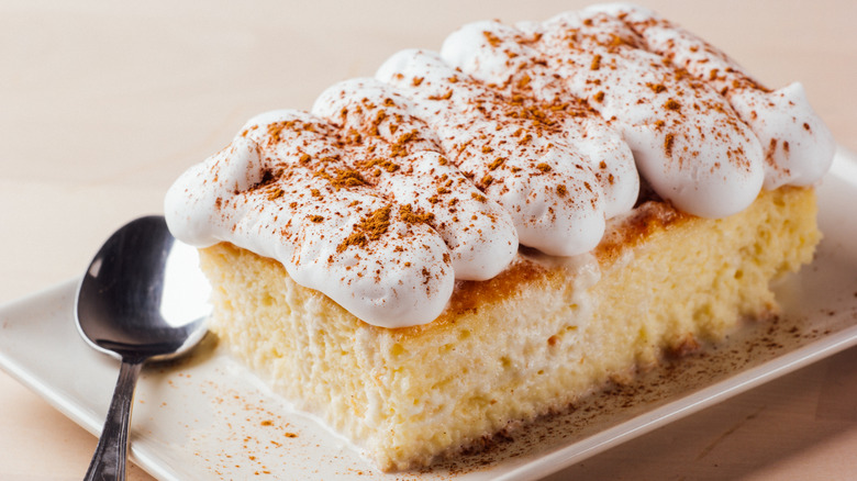 If you're unfamiliar with any other use of sweetened condensed milk, chances are good you have at least a passing acquaintance with tres leches cake. The tres leches — three milks — are heavy cream, condensed milk, and sweetened condensed milk, stirred together and poured over a baked vanilla-scented cake. The resulting heavenly texture melts in the mouth and somehow manages to feel both light and luxurious simultaneously.