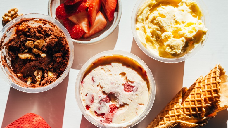 All you need is a can of sweetened condensed milk, the flavoring of your choice, heavy cream, and a hand mixer. Add your milk and flavoring (any kind of extracts work here) to a large bowl and stir to combine. Use a hand mixer to beat your heavy cream in another large bowl until it holds stiff peaks. Add a large spoonful of whipped cream to your sweetened condensed milk and stir to loosen the mixture. Stir in the rest of the whipped cream, pour into a freezer-safe container, and freeze for four to six hours. Serve with your favorite toppings.
