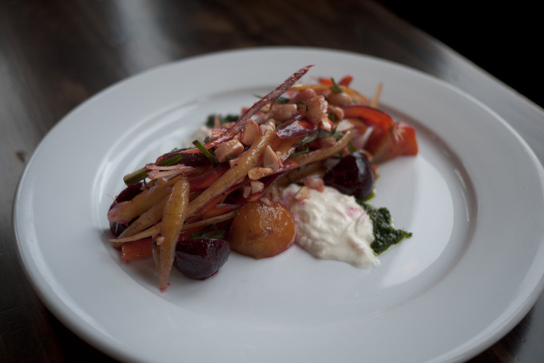 The Early Spring Market Salad recipe from Brooklyn's Thistle Hill Tavern is one of the best things we've tasted in the early days of this changing season. Chef Rebecca Weitzman was good enough to share the recipe with us, and it's a perfect dish to hold us all over til the farmers markets start filling up with better seasonal produce (and yes, we live in NYC, and it's been a damn cold winter).