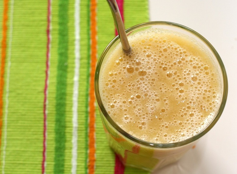Combine all ingredients in a blender and puree until smooth. Pour into a to-go cup and that's breakfast!