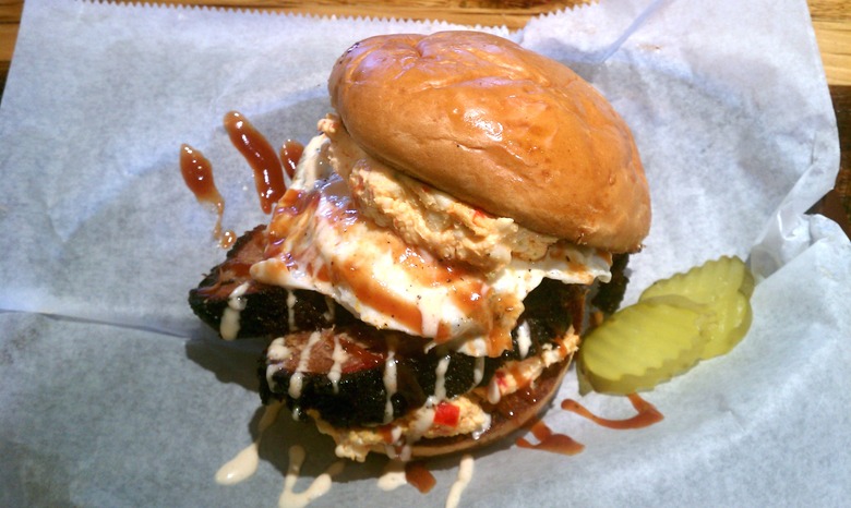 Since the restaurant is still brand new, their menu remains in flux. But one dish has remained constant. The Tuck Special is a sandwich made of smoked brisket, blessed with a beautiful purple smoke ring, topped with house-made pimento cheese, a poached egg and a nice quantity of both red and white barbecue sauces. Although it's a new crowd-pleaser in 12South, it's been a favorite in the Tuck family for a long time.