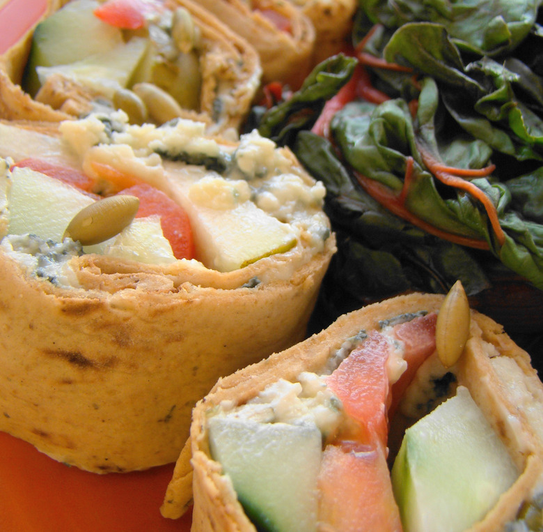 Best of all, you don't have to use a wrap, meaning your awesome sandwich fillings don't have to be caged in a gummy, flavorless waste of carbs. Break out a rolling pin and that rosemary olive bread or 75% butter brioche. Slice the loaf lengthwise into long slices, flatten with the rolling pin, add filling, roll up, secure with plastic wrap, refrigerate and slice. Keeping things on the drier side will prevent the bread from getting soggy. Here are some ideas, purposely excluding "hummus and veggie strips" because nobody actually wants that for lunch.