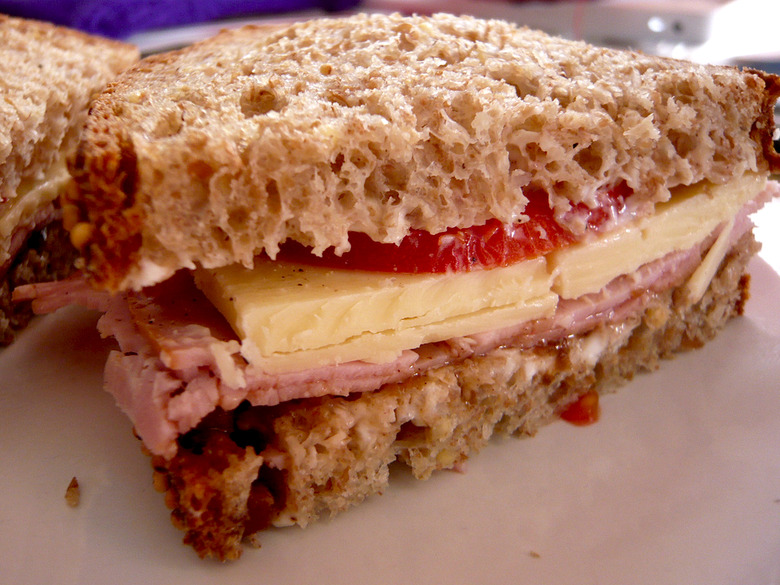 This sandwich must feature thick, almost steaklike slices of aged cheddar. Cheddar cutlets, if you will. The aging adds tangy sharpness and a more crumbly rather than creamy texture. Then, a thick layer of Branston pickle, made from sweet gherkins, cauliflower, carrots, onions and rutabaga in a thick, sweet sauce which tastes somewhat like ketchup. We definitely don't have an equivalent stateside, but plenty of supermarkets stock the most ubiquitous British foods — malt vinegar, Cadbury's chocolate, tea biscuits and the like — and Branston pickle can often be found. Try the Indian store as a last resort, no joke.