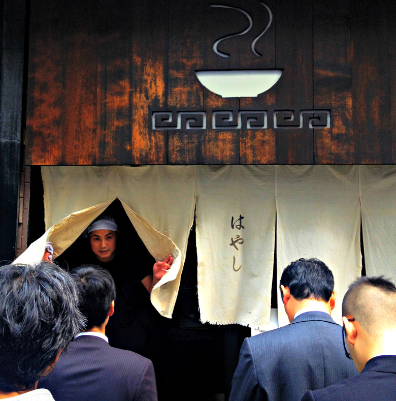 The next stop on my ramen crawl is Hayashi Ramen, in Shibuya. Hayashi is located about six minutes by foot from the Shibuya main crossing. Tokyo is a particularly tough city to navigate, and while Hayashi isn't especially hard to find, it's tucked away on a side street. Luckily, I spot the line of salarymen outside and know I've come to the right place.