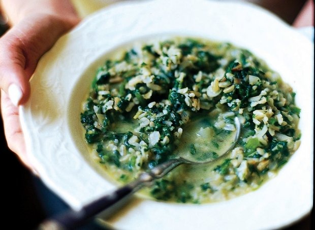 Now when we say make dark leafy greens recipes, we don't mean serve them up straight with salad tongs and green goddess dressing. We mean serve them right. Stuff them into shells, make a pizza, stir them into risotto or wok-toss them with spicy fermented black bean paste. These are spring greens we're talking about — and they're not only really good for you, they're in-season from now until...well, we're not going to think that far in the future.