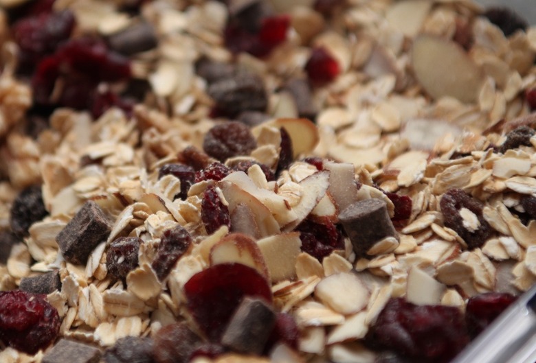 - Remove from the oven and let cool. Transfer to a large bowl and toss with the cherries, and chocolate.